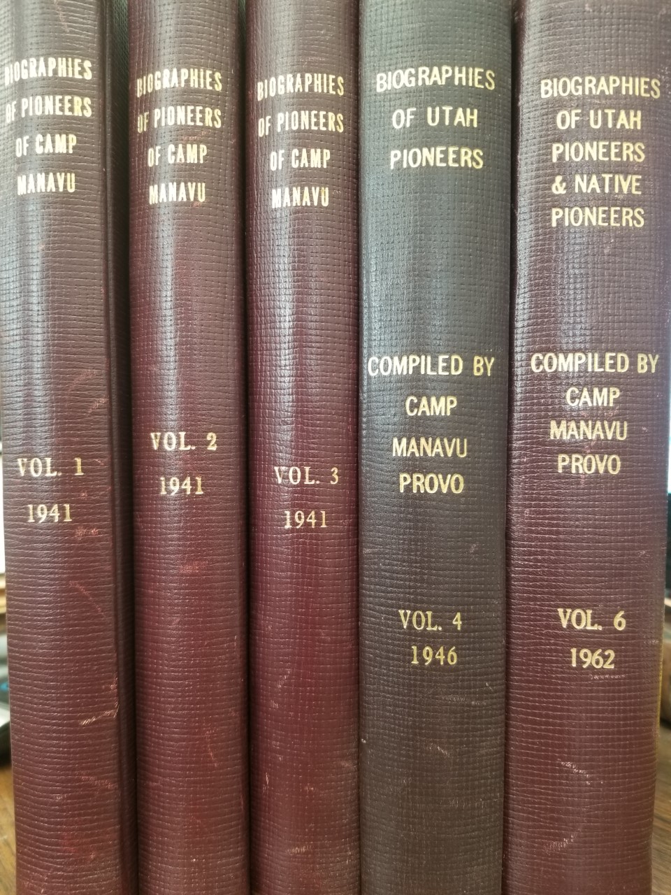 Biographies of Pioneers of Camp Manavu, Provo — Vol 1-4, 6 — Edith B. Cottam, Polly Henderson, and Martha R. Young 1941/1946/1962