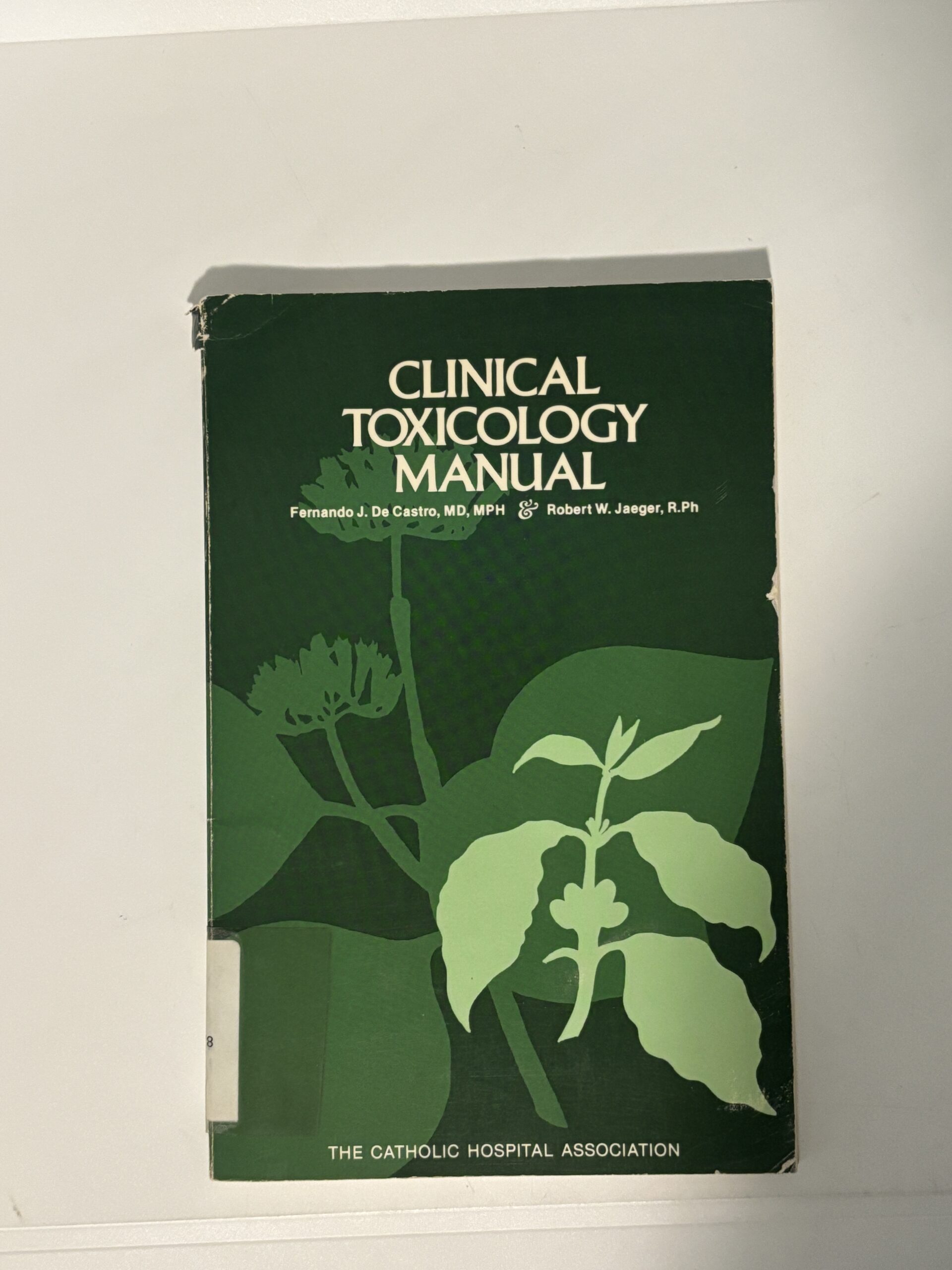 Clinical Toxicology Manual (1978) by; Fernando J. De Castro, MD, MPH & Robert W. Jeager, R. Ph