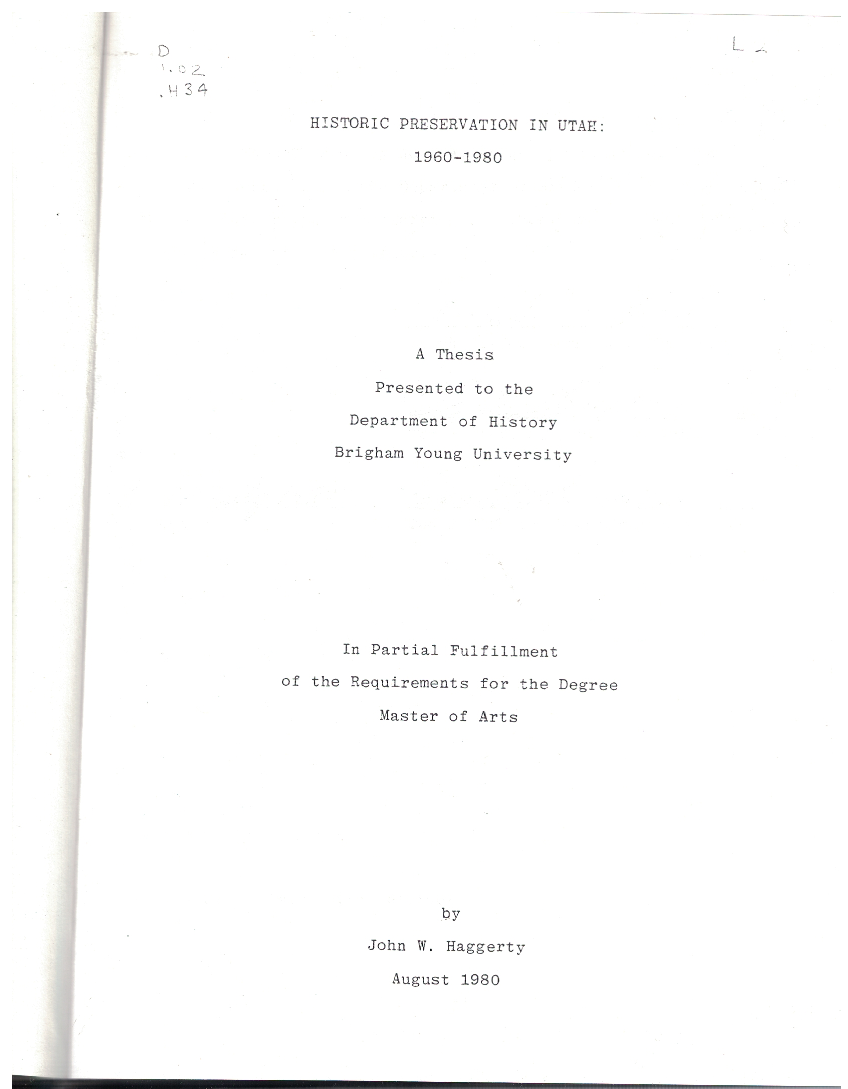 Historical Preservation in Utah 1960-80 by John W. Haggerty