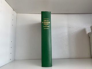 This is a green hardbound with gold lettering. There are a couple of black marks on the front cover. It has library binding. The outside of the pages has some dirt marks.