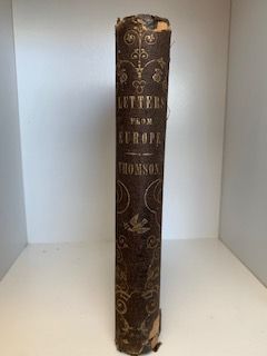 This is a brown hardbound and is in fair condition. The spine is damaged on the top and bottom. The front and back covers have some dust marks. There is some slight water damage throughout the book at the top. The top back corner is damaged.