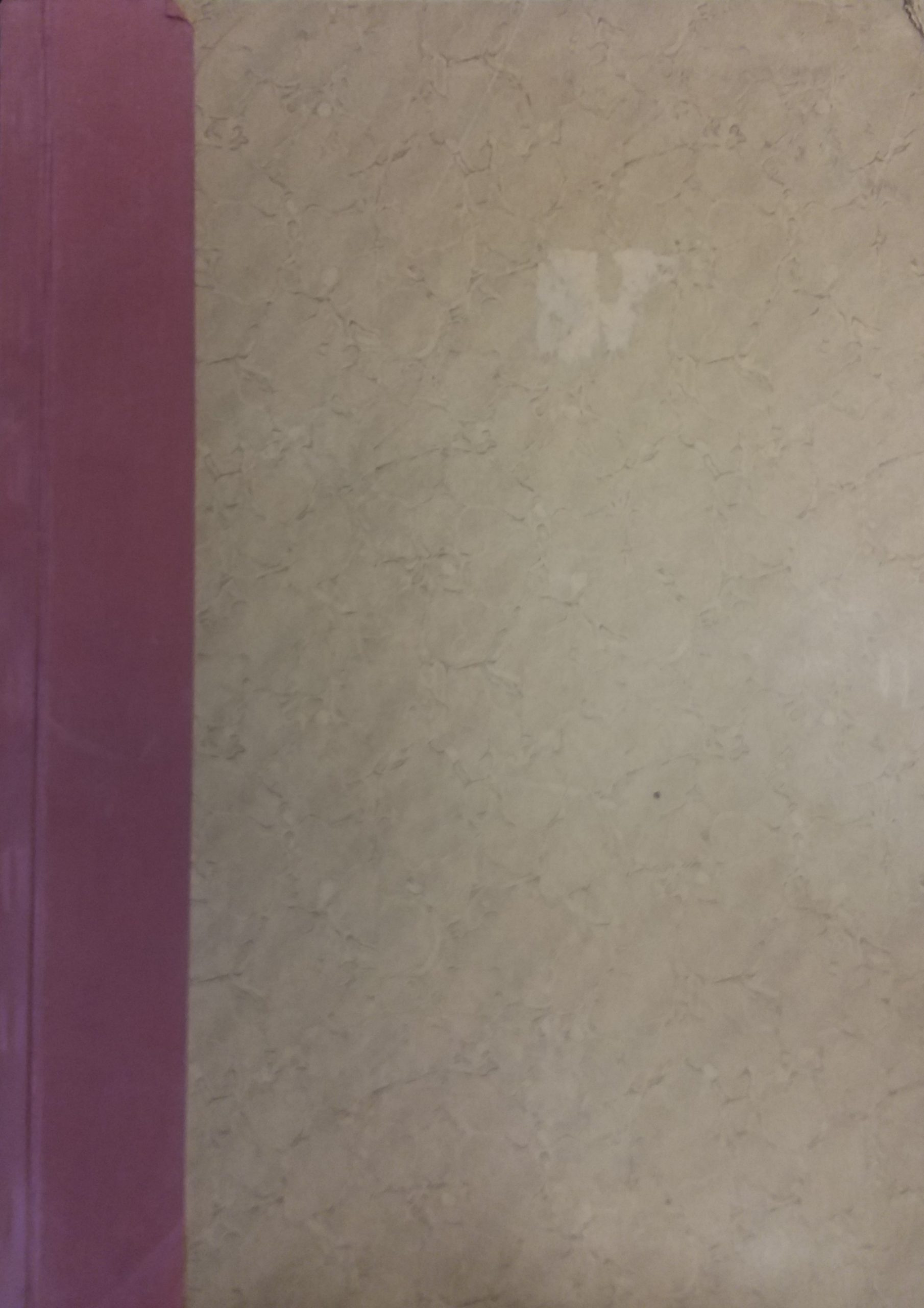 Large brown hardcover with red spine. Some shelf wear with minor tears on both covers. Some pencil markings on the first page, however the text throughout is clean, clear, and legible. Some of the first few pages are torn, but otherwise in good to fair condition.