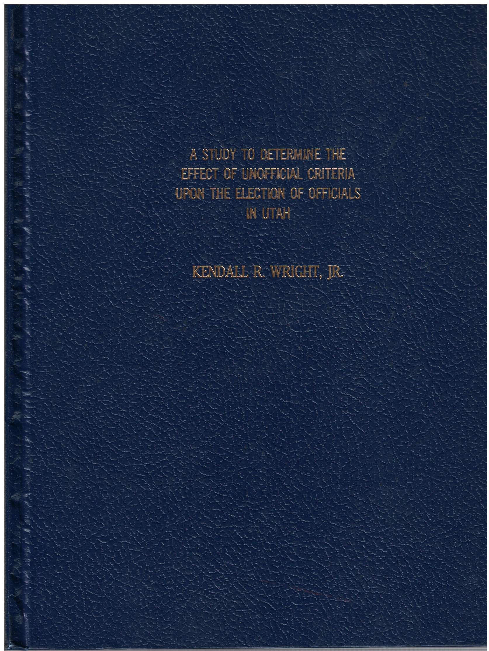 A Study to Determine the Effect of Unofficial Criteria Upon the Election of Officials in Utah by Kendall R. Wright, Jr.