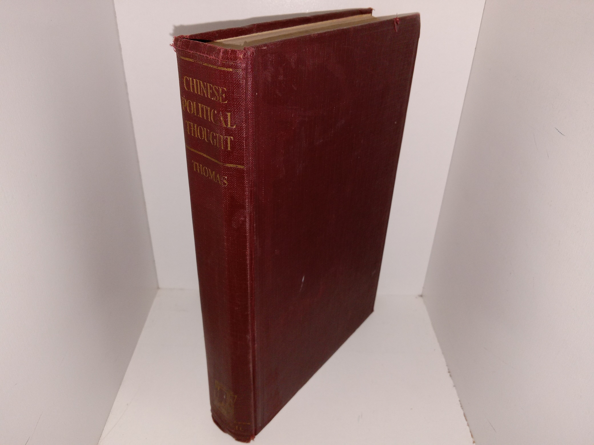 Fair condition, burgundy hardcover with no dust jacket. The cover has some denting and small tears on the corners and edges, a small stain on the back, and some crushed corners. The front flyleaf has an ink stamp, writing in pencil and eraser marks. The inside covers and flyleaves have some small stains and residue. Some pages have small stains on the edges. Text throughout is clear and legible.