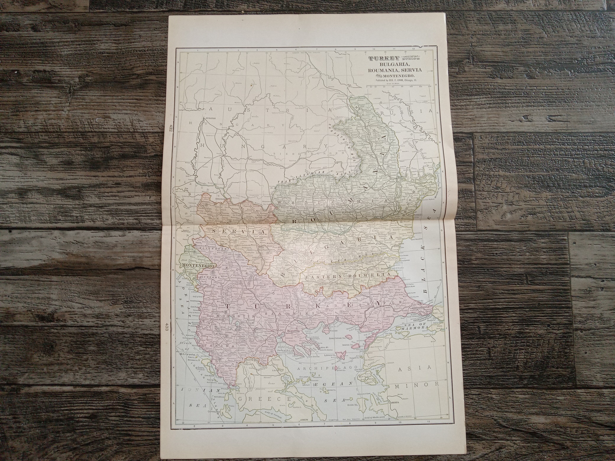 3 Maps in One: Turkey in Europe, Bulgaria, Roumania, Servia and Montenegro / Crete or Candia / Cyprus