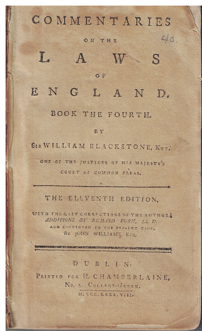 1878 — Commentaries on the Laws of England — Book the Fourth — by Sir William Blackstone, Knt. (The Eleventh Edition / Rare Dublin Ireland Edition)