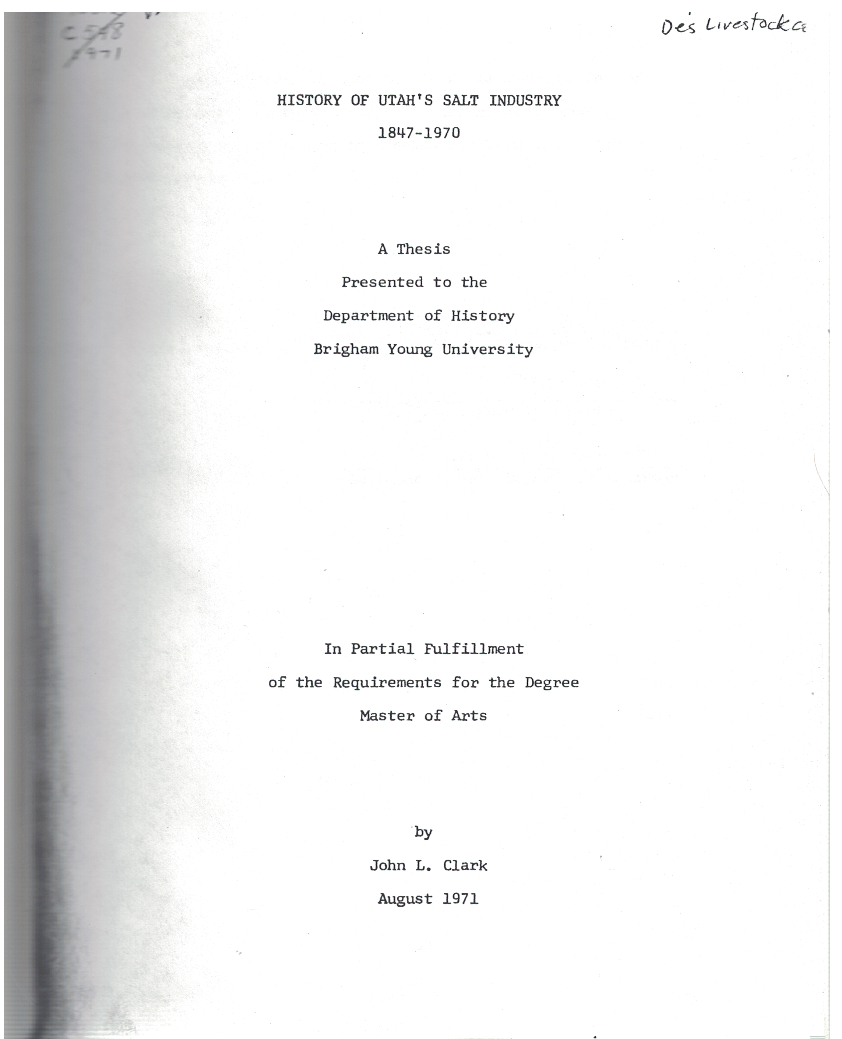 History of Utah’s Salt Industry 1847-1970 by John L. Clark 1971