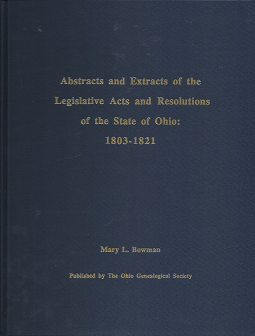Abstracts and Extracts of the Legislative Acts and Resolutions of the State of Ohio: 1803-1821 – Mary L. Bowman