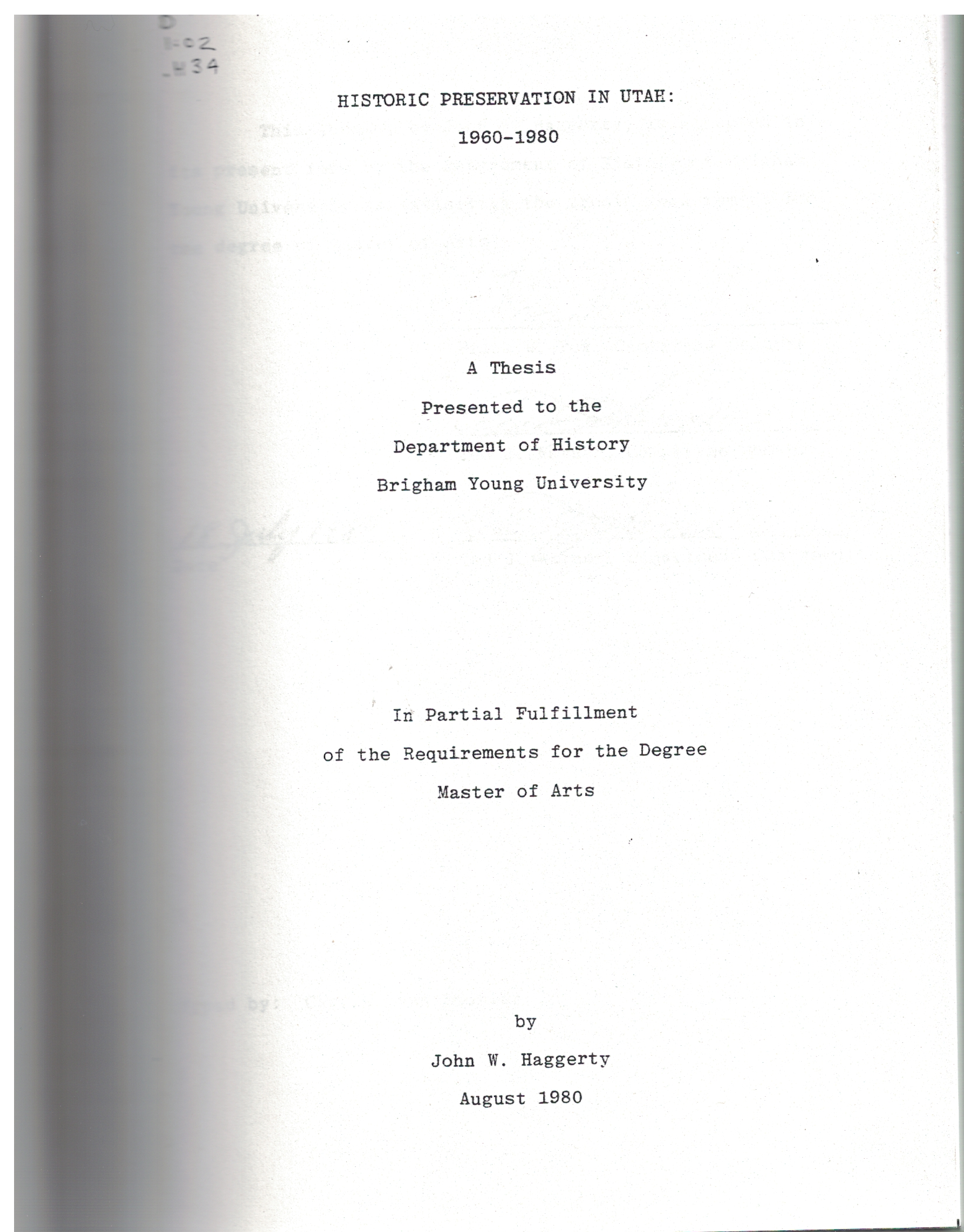Historic Preservation in Utah: 1960-1980 ~ by John W. Haggerty