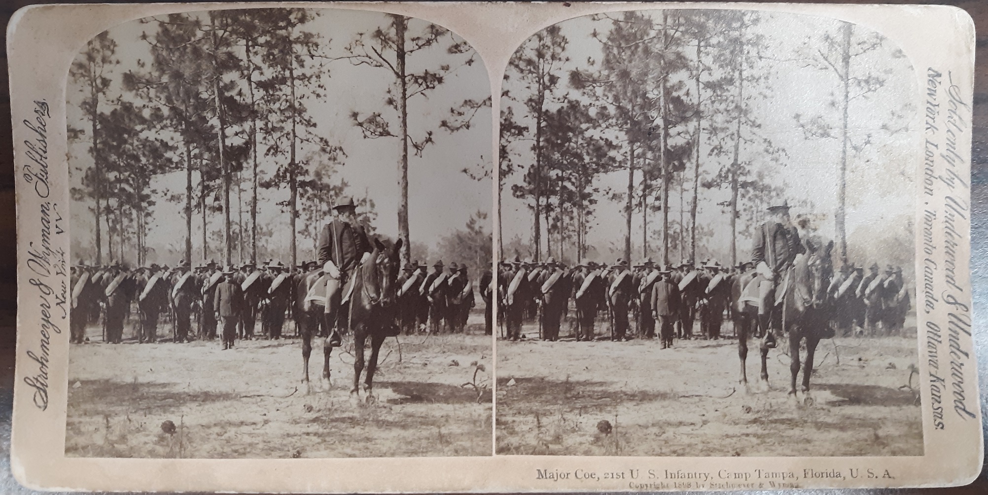 Strohmeyer & Wyman, Publishers Stereoview Card: Major Coe, 21st U. S. Infantry, Camp Tampa, Florida, U. S. A.