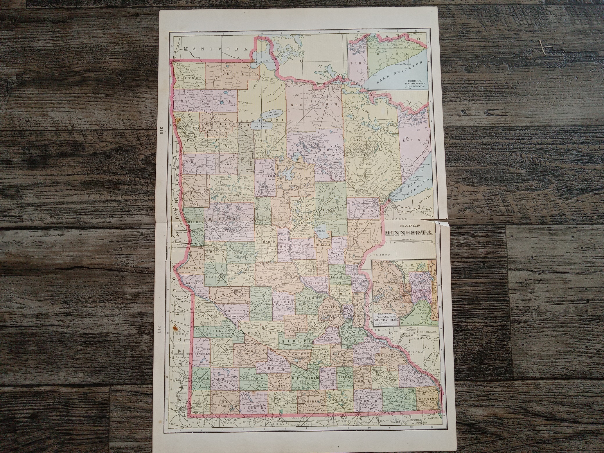 Map taken from a large, old atlas, 22 inches tall; 14 inches wide. Folded in half; good condition. The edges have some tears, and there’s a little writing in pencil.