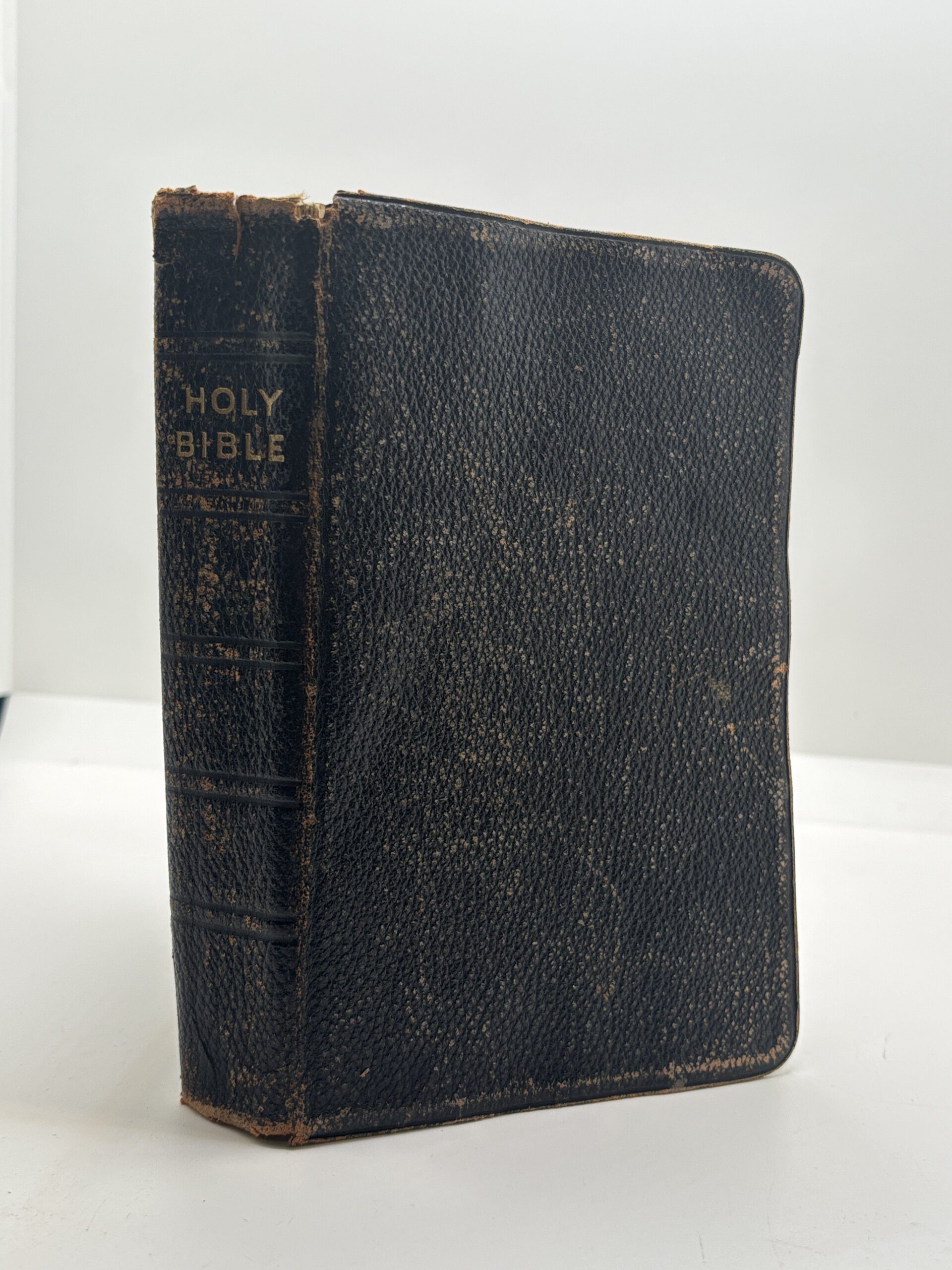 Good condition Leather cover. Some discoloration, tearing, and bent edges on the spine. Stains on cover. Some torn pages. Clear text without any markings. Pages edges slightly dirty.