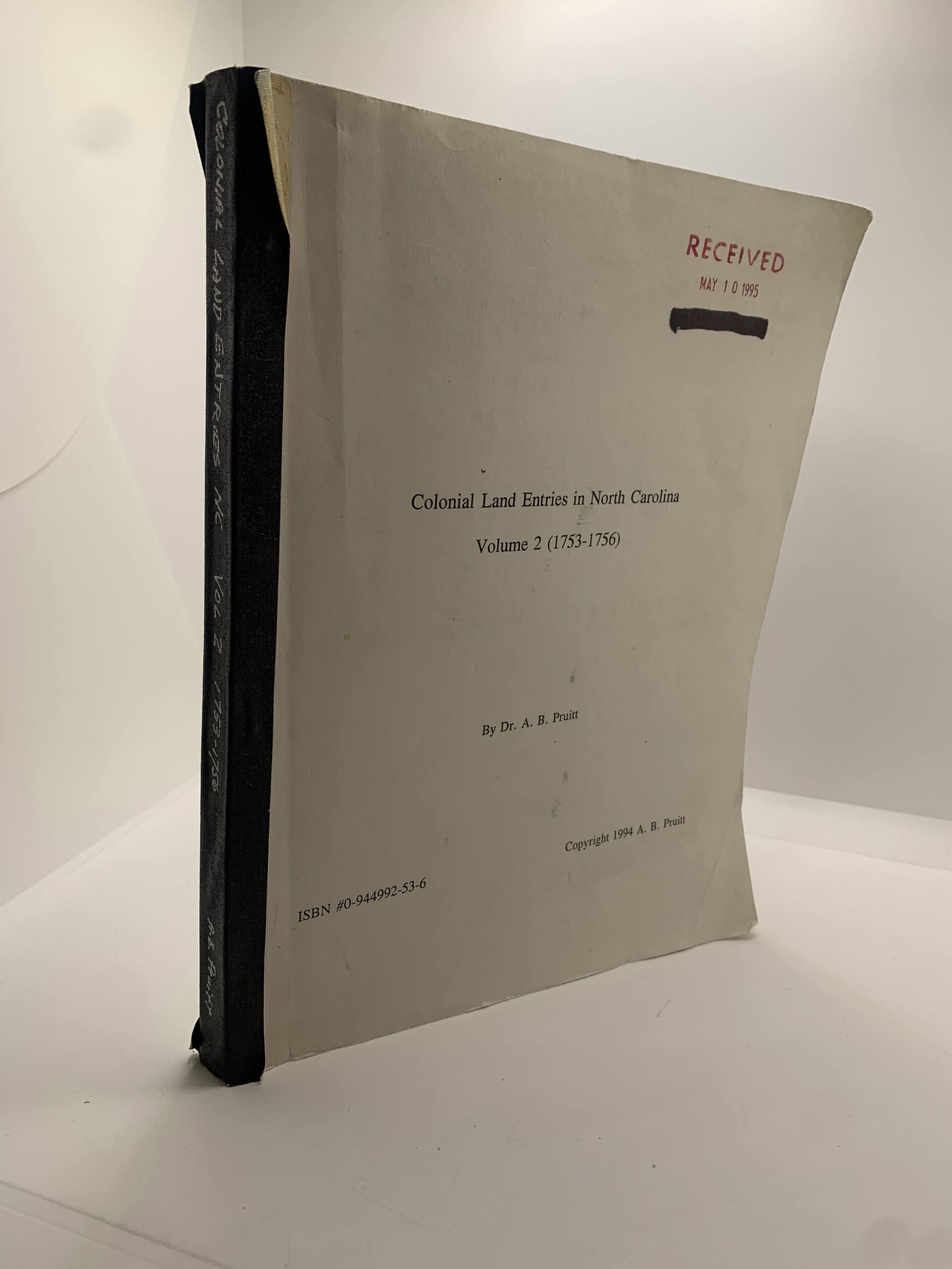 Colonial Land Entries in North Carolina Vol. 2 1753-1756 (1994) by Dr A.B. Pruitt