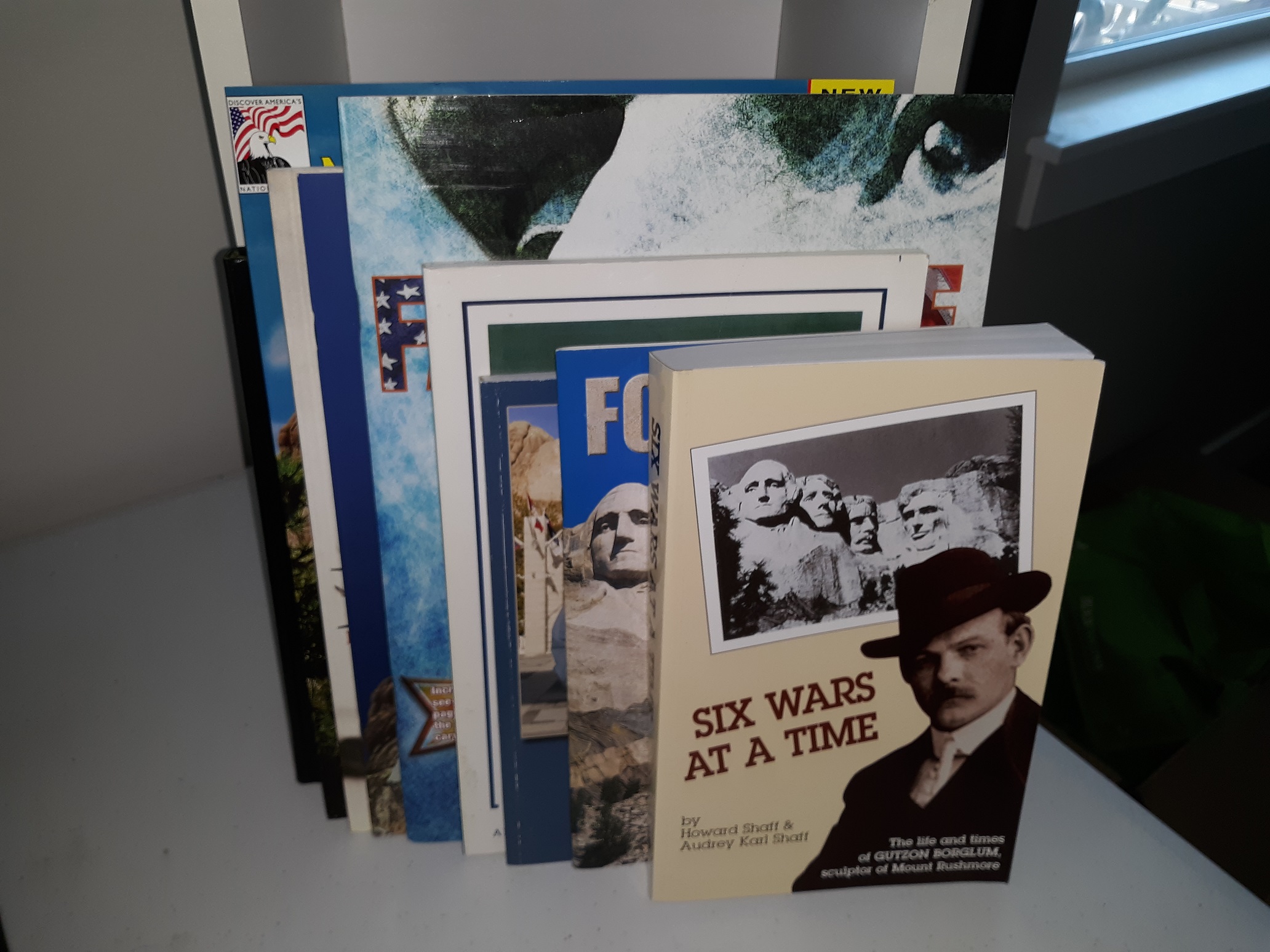 - Borglum’s Mountain: A Pictorial History of the Mount Rushmore Memorial (1984) ~ by Stan Cohen; ISBN: 0933126344