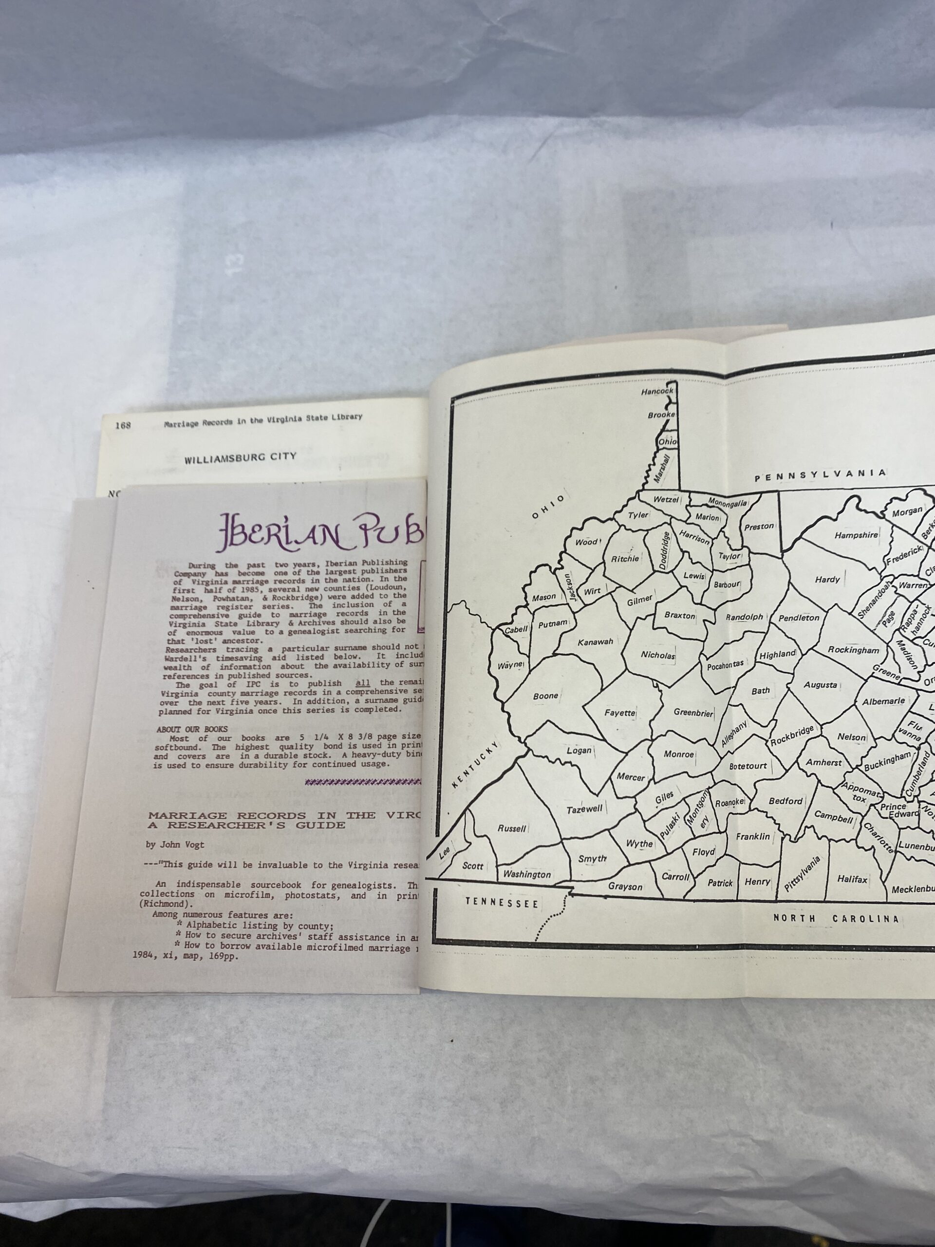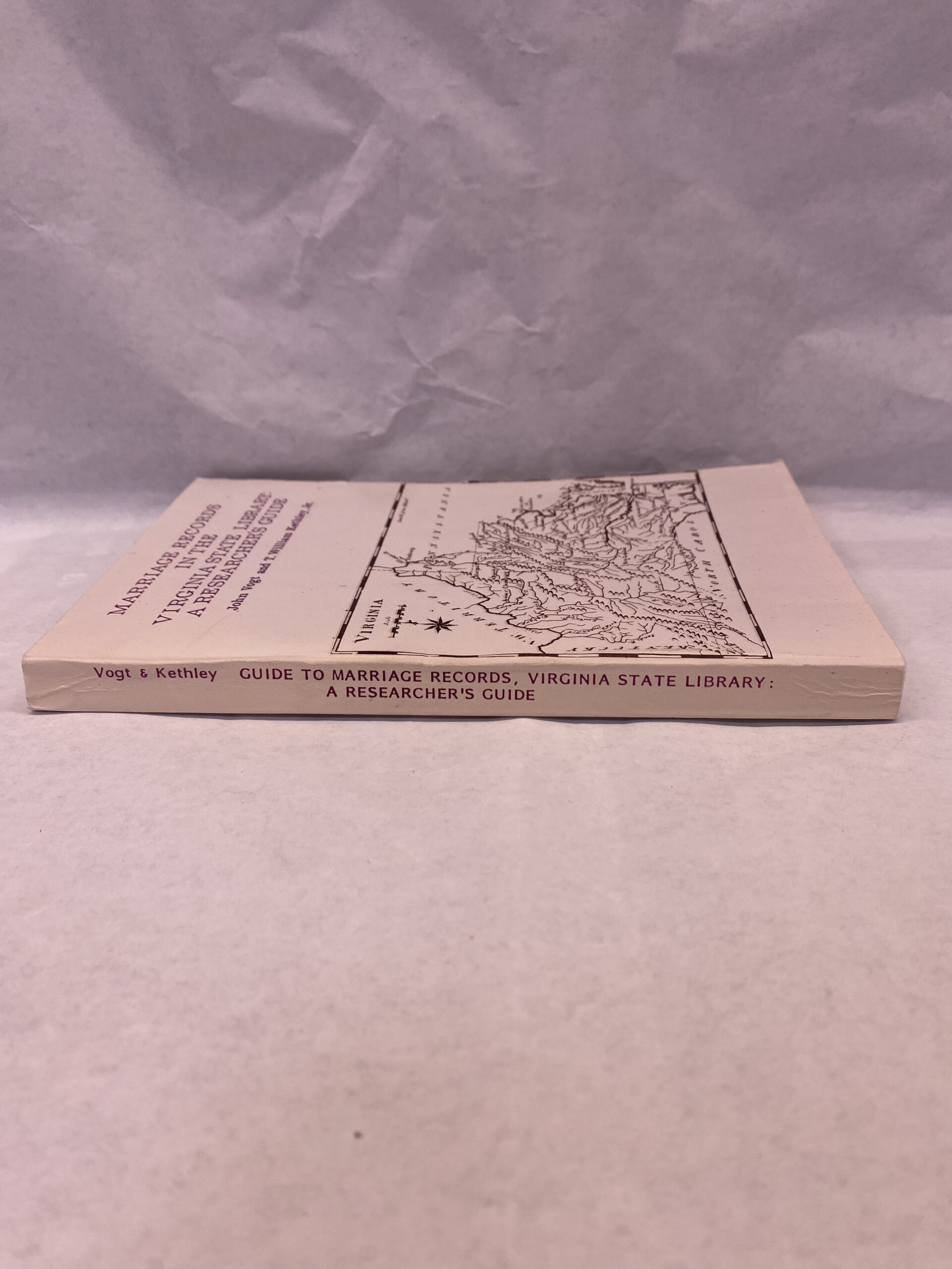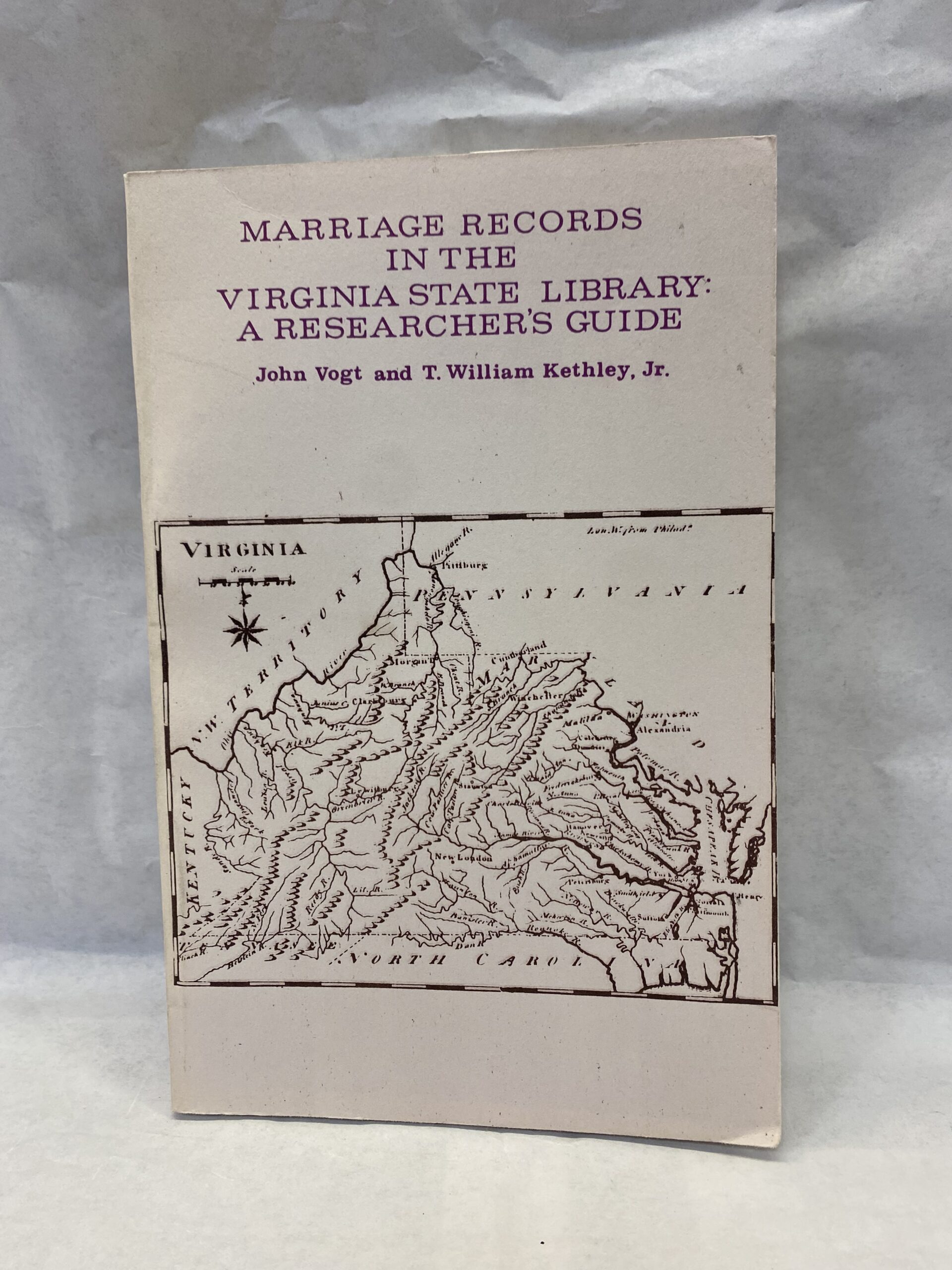 Marriage Records in the Virginia State Library: A Researcher’s Guide by John Vogt and T. William Kethley Jr. Paperback, 1984.