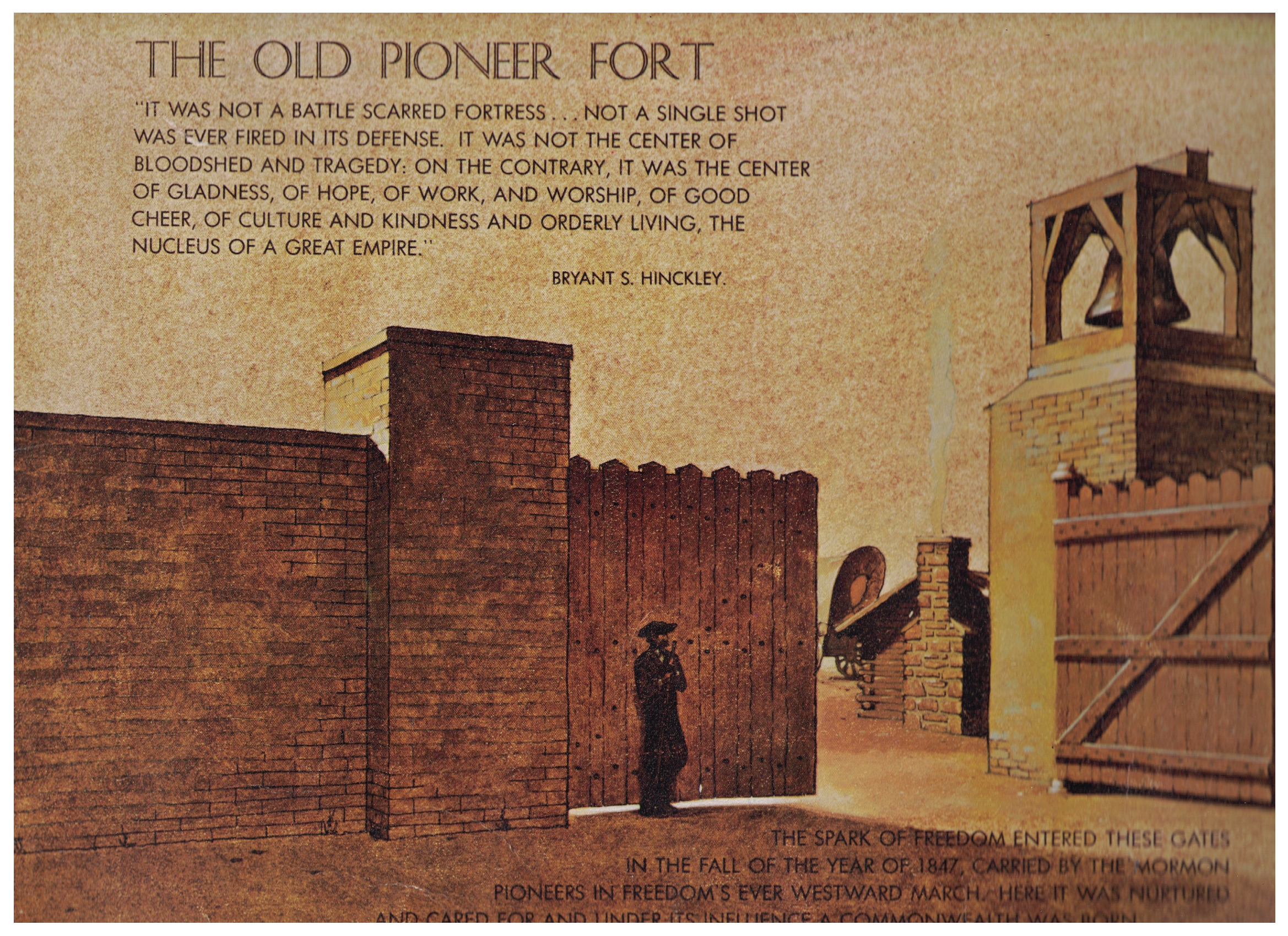 The spark of freedom entered these gates in the fall of the year of 1847, carried by the Mormon pioneers in freedom’s ever westward march. Here it was nurtured and cared for and under its influence a commonwealth was born.