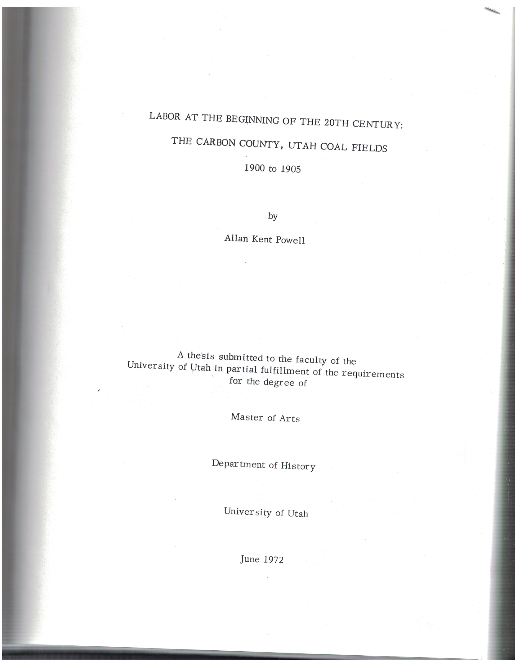 Labor at the Beginning of the 20th Century: The Carbon County, Utah Coal Fields 1900 to 1905 by Allan Kent Powell