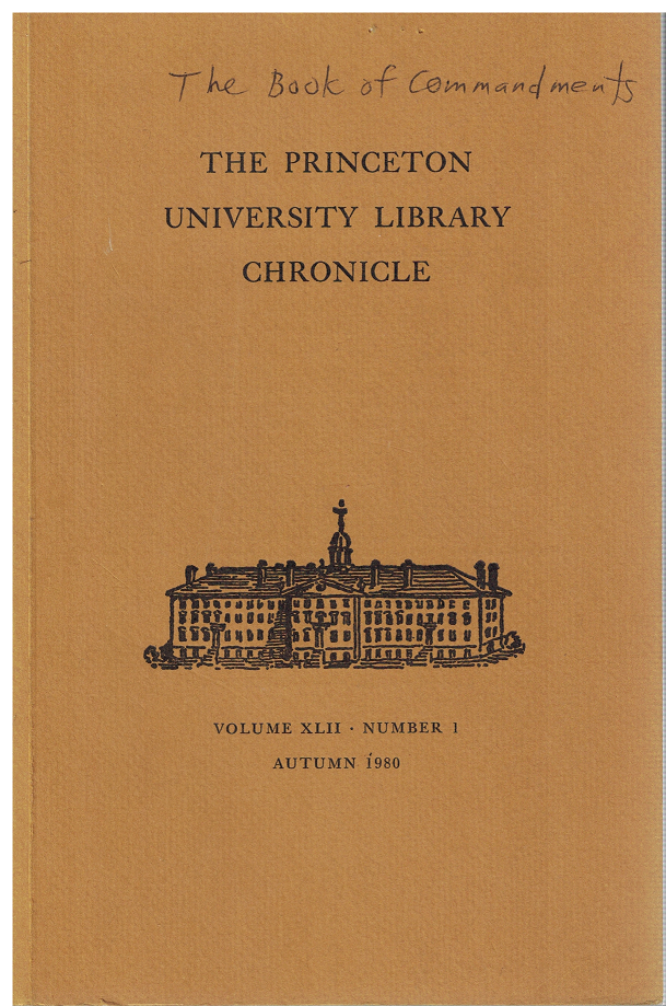Prospect: The Search for a Garden, Joseph Smith and A Book of Commandments, and The Princeton Collection of Ethiopic Manuscripts.