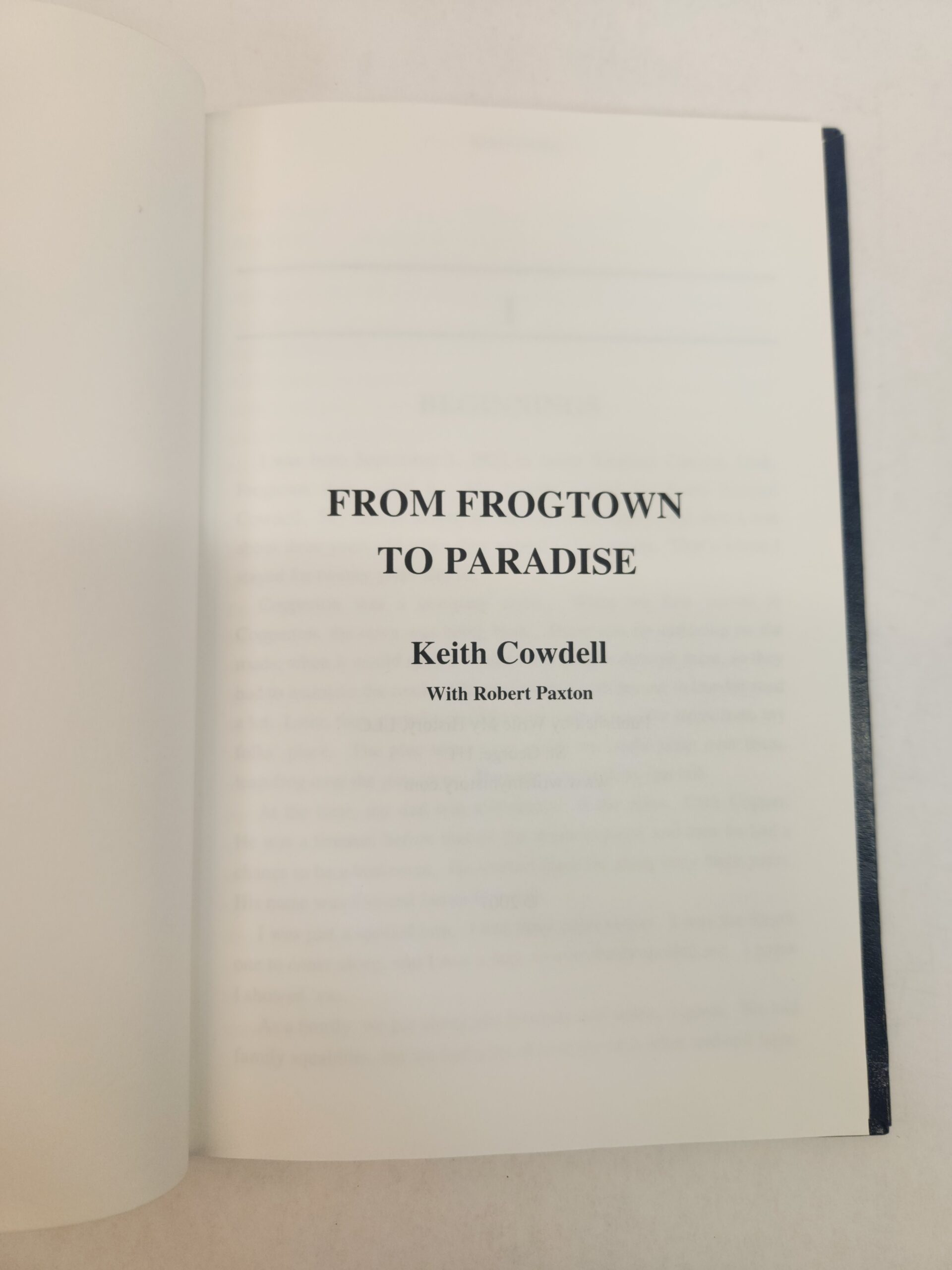From Frogtown to Paradise (2007, Hardcover, Blue Faux Leather) No marks/writing on pages. Corner and edges show little shelf wear. Binding is good. Front and back cover has a couple smudge marks.
