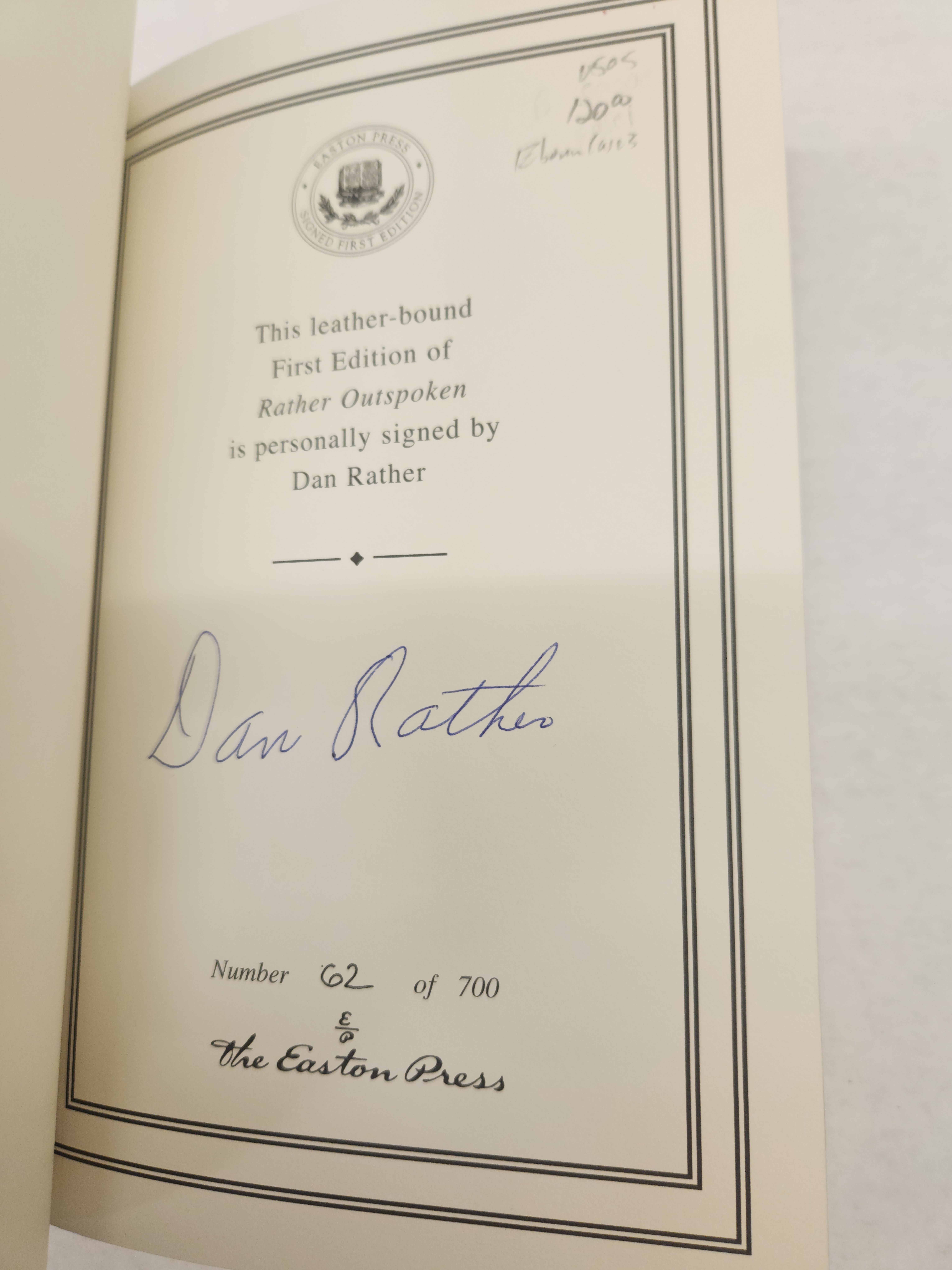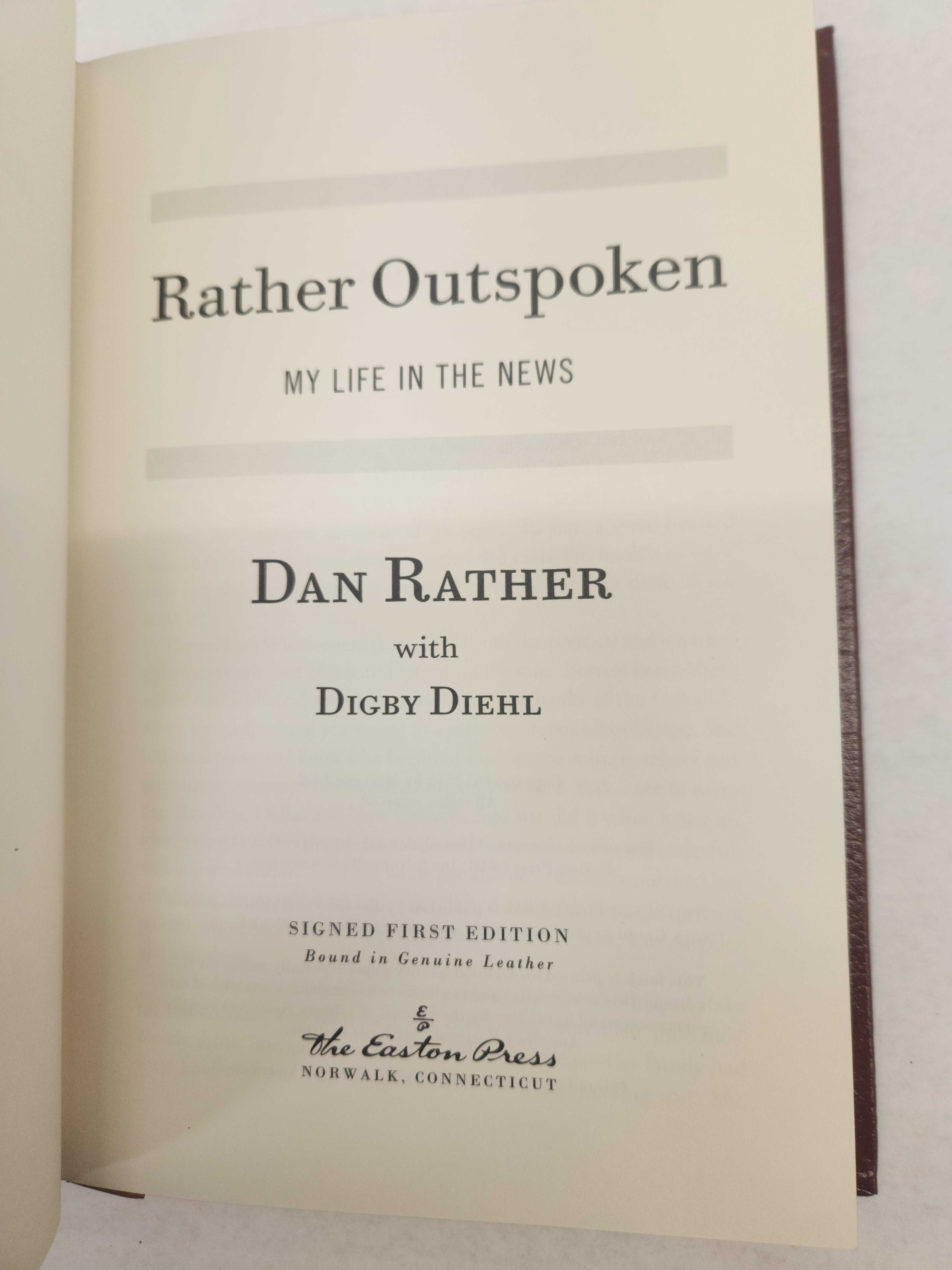 Rather Outspoken (2012, Hardcover, Leather Bound, Signed by Author) No writing/marks on pages. Corner and edges show minimal to no shelf wear. Binding is good.