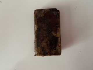 This is a small foreign book. it is in fair condition. The covers are damaged and torn along with with many of the pages at the edges.