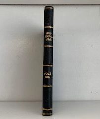 This is a black hardbound and is in great condition. It seems to have been repaired on the covers but the spine is the original. Some of the pages have some small dirt marks. The corners of the book are damaged and scuffed slightly.