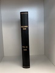 This is black hardbound and is in good condition. The spine has some white scuffs. The book is a rebound. There are stains on the bottom edge of the pages and some water damage on the bottom of the first couple pages.