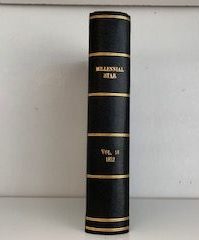 This is black hardbound and is in great condition. The spine is faded slightly. The outside pages are speckled. The back pages have some water damage. The book has been rebound.