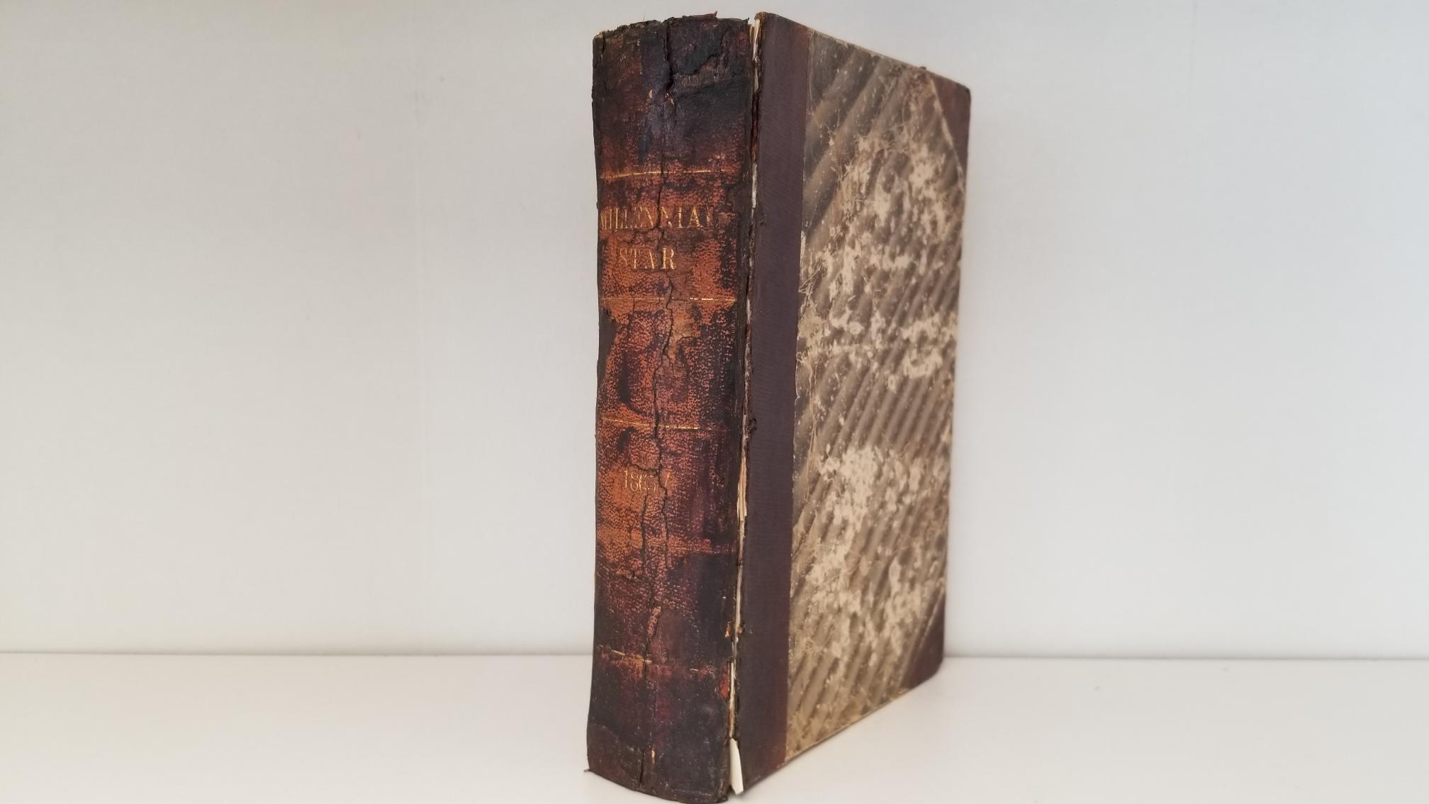 Poor used condition 3/4 Leather-bound, front board detached, back of binding loosening, spine is heavily worn with chipping. clean text. Rare civil war era!