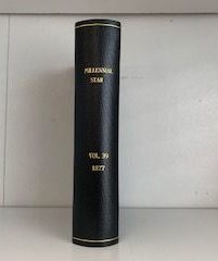 This is black hardbound and is in good condition. The spine has some white scuffs. The book is a rebound. There are some brown stains on the inside of the pages. The book has some water damage on the bottom of the pages.