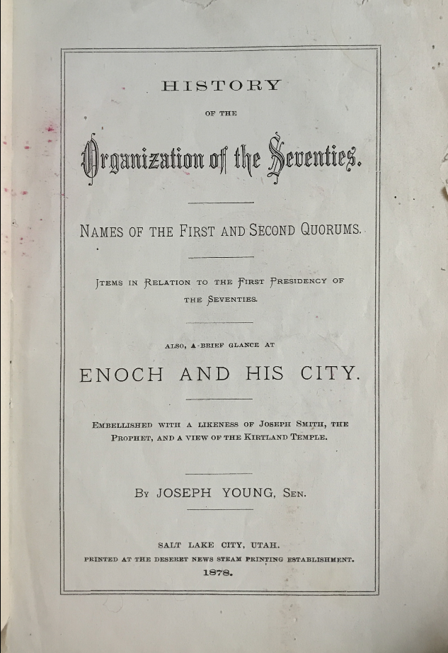 / 1878 ~ Joseph Young ~ History of The Organization of the Seventies