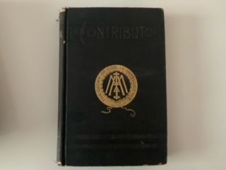 This is a black hardbound with gold lettering and is in good condition. There are a couple of scuff marks on the front and back covers. The top and bottom of the spine are damaged. The corners of the book are slightly damaged.