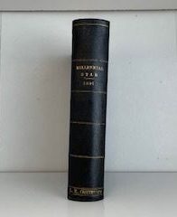 This is black hardbound and is in good condition. The spine is faded slightly. There are a few white marks on the back cover. The outside pages are speckled. A couple of pages have dirt marks.
