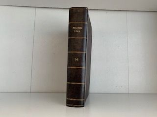 This is black hardbound and is in good condition. The spine is damaged and faded slightly. There are a few white marks on the back cover.