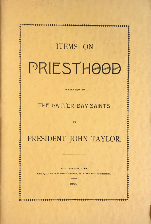 / 1899 ~ Reprint ~ President John Taylor ~ Items on Priesthood Presented by The Latter-day Saints