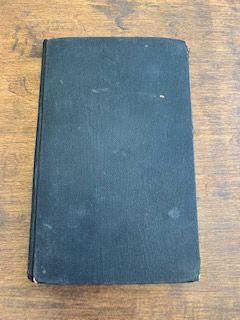 This book is in fair condition, it is a black hardbound. There is some water damage on all the pages. The first page has some writing and a blue stamp. The spines binding is starting to detach in front of the book. There is a sticker on the inside of the front cover.