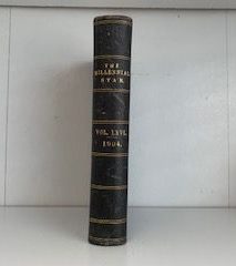 This is black hardbound and is in good/fair condition. The spine is faded slightly. There are a few white marks on both covers. The pages have some brown marks. There is a stamp on the inside of the first cover. There is some shelfware on the bottom of the book.