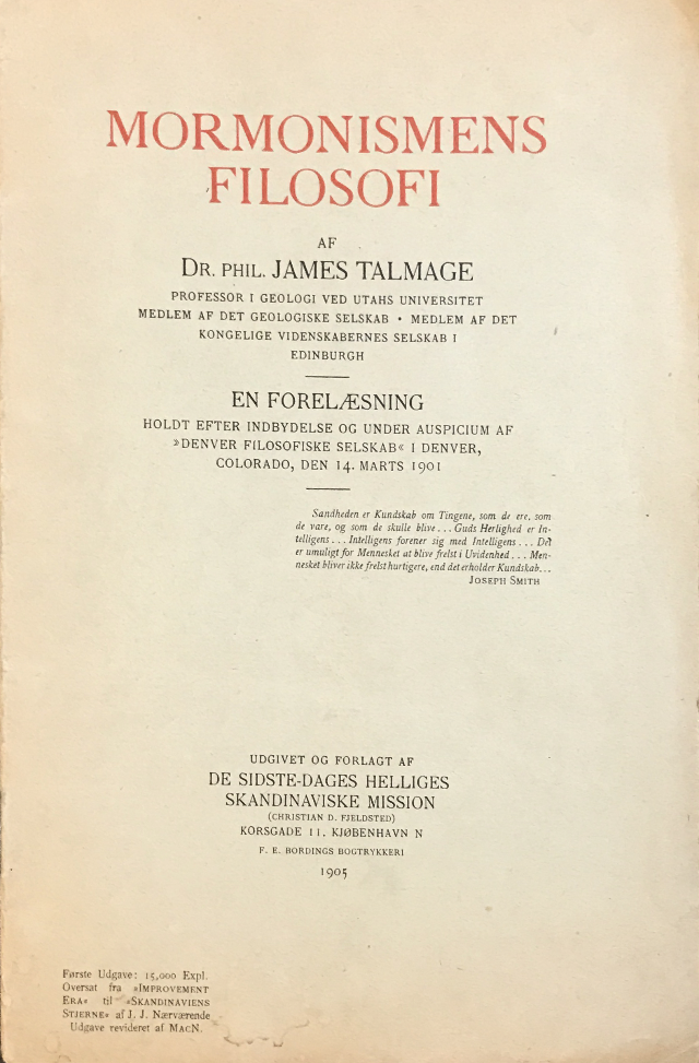 1905 ~ Dr. Phil. James Talmage ~ Mormonismens Filosofi