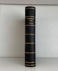 This is black hardbound and is in good condition. The spine is faded slightly. There are a few white marks on the back cover. The outside pages are speckled. A couple of pages have dirt marks.