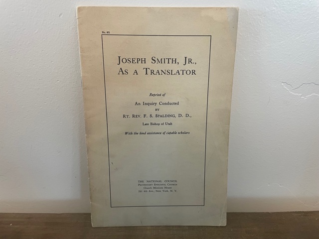 / 1912 ~ Joseph Smith, Jr., As A Translator ~ Reprint of an Inquiry Conducted by RT. Rev. F. S. Spalding, D. D.