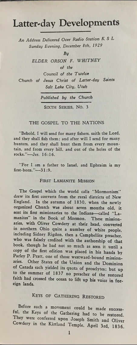 1929 ~ Elder Orson F. Whitney ~ Latter-day Developments ~ No. 3 only