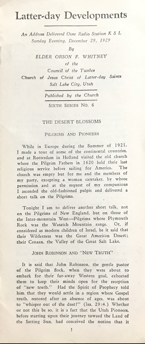 1929 ~ Elder Orson F. Whitney ~ Latter-Day Developments ~ No. 6 only