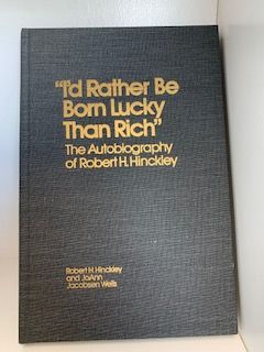1977- “I’d Rather Be Born Lucky than Rich”: An Autobiography Of Robert H. Hinckley- Robert Hinckley and JoAnn Jacobsen Wells- Signed