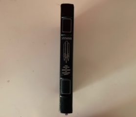 This is a blue leather hardbound and is in perfect condition. There is some pen writing on inside of the front cover. The silver on the outside of the pages have been scuffed in some places.