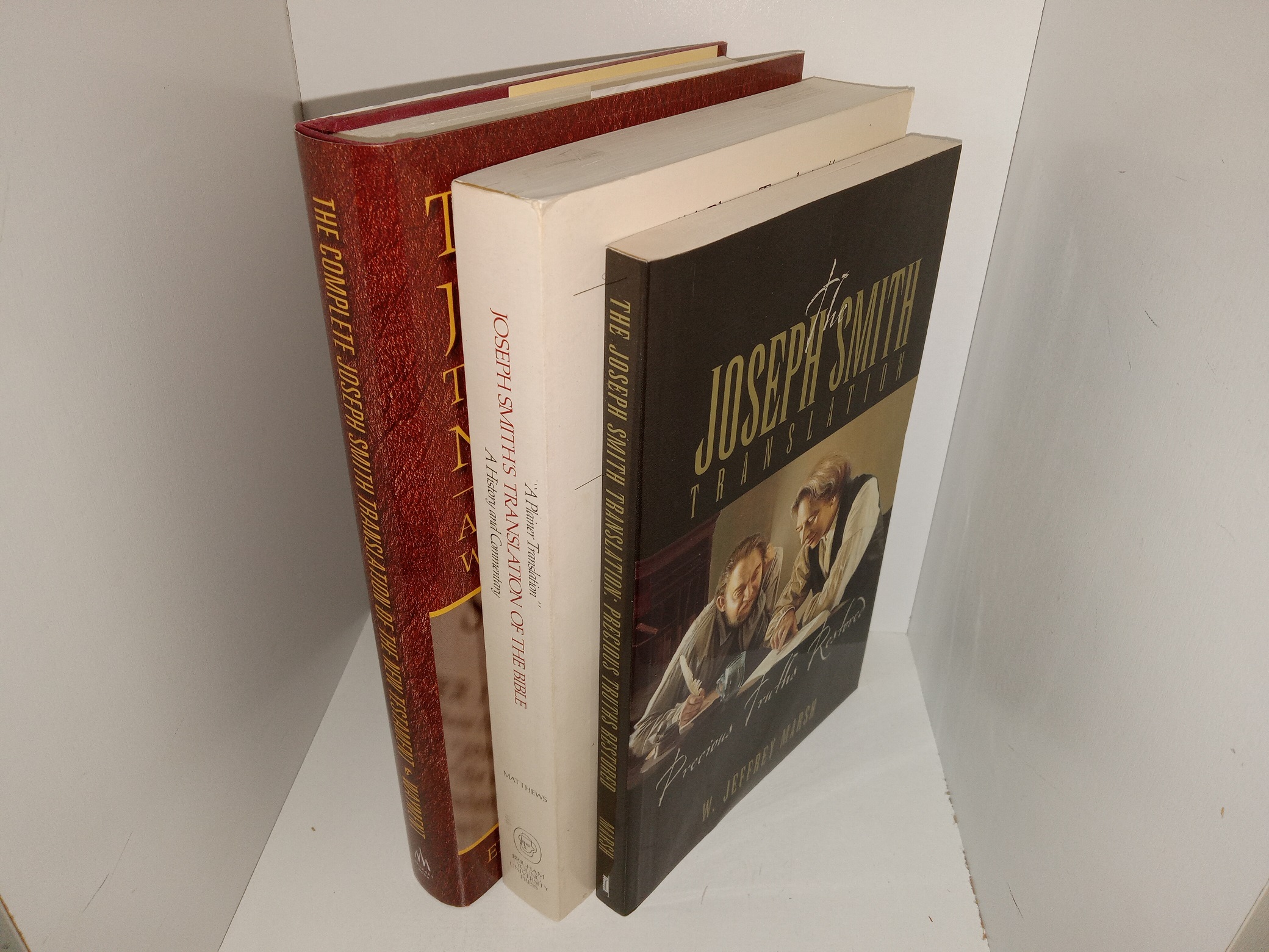 3 fair-good condition books (1 hardcover, and 2 softcovers. The dust jacket of The Joseph Smith Translation: Precious Truths Restored has some scuffing. The cover of “A Plainer Translation”: Joseph Smith’s Translation of the Bible: A History and Commentary has some stains, creases, scuffing, and scratches, and some of its pages have stains. The cover of The Complete Joseph Smith Translation of the New Testament has some minor scuffing. The first pages have some writing in pencil and eraser marks. The text throughout each is clear and legible.