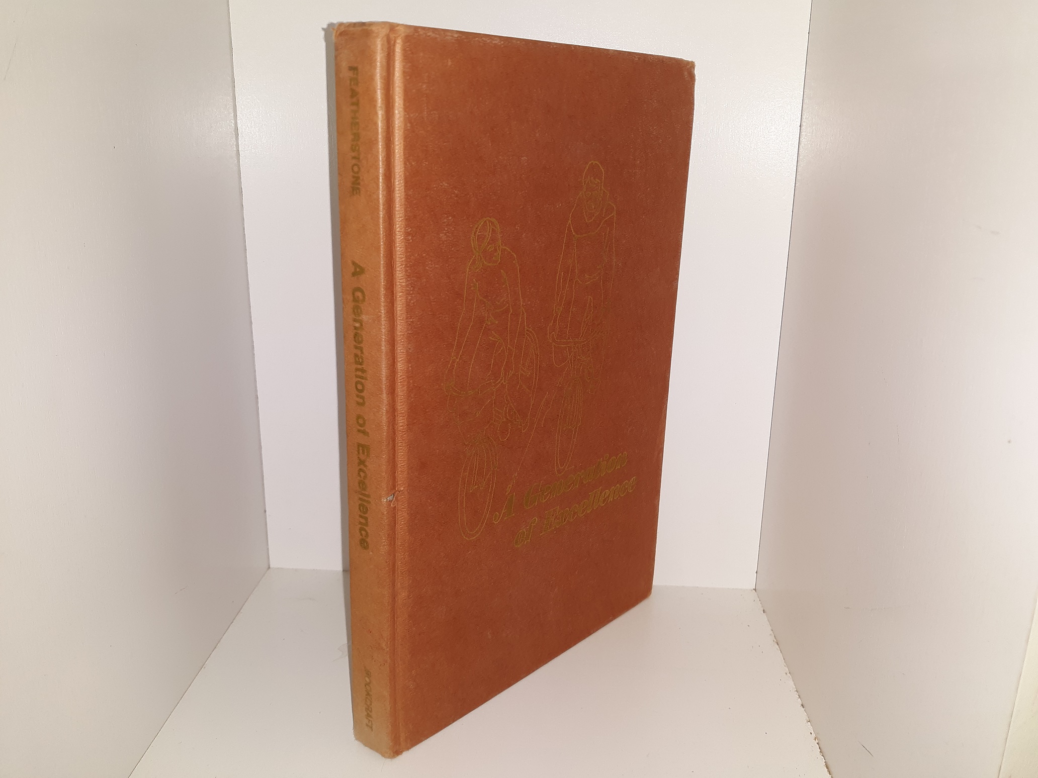 Fair condition, light brown hardcover with no dust jacket. The cover has crushed corners, a small piece torn off the right edge of the spine, some small dark scuff marks, and some fraying and tears at the corners and edges. The front flyleaf has writing in pen, pencil, and eraser marks. Some pages are creased. There are pen marks or notes written in pen throughout the text.