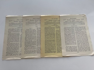 This is 4 various Sunday School Lesson issues. They are damaged around the edges and torn in a couple of spots. There is also some discoloration.