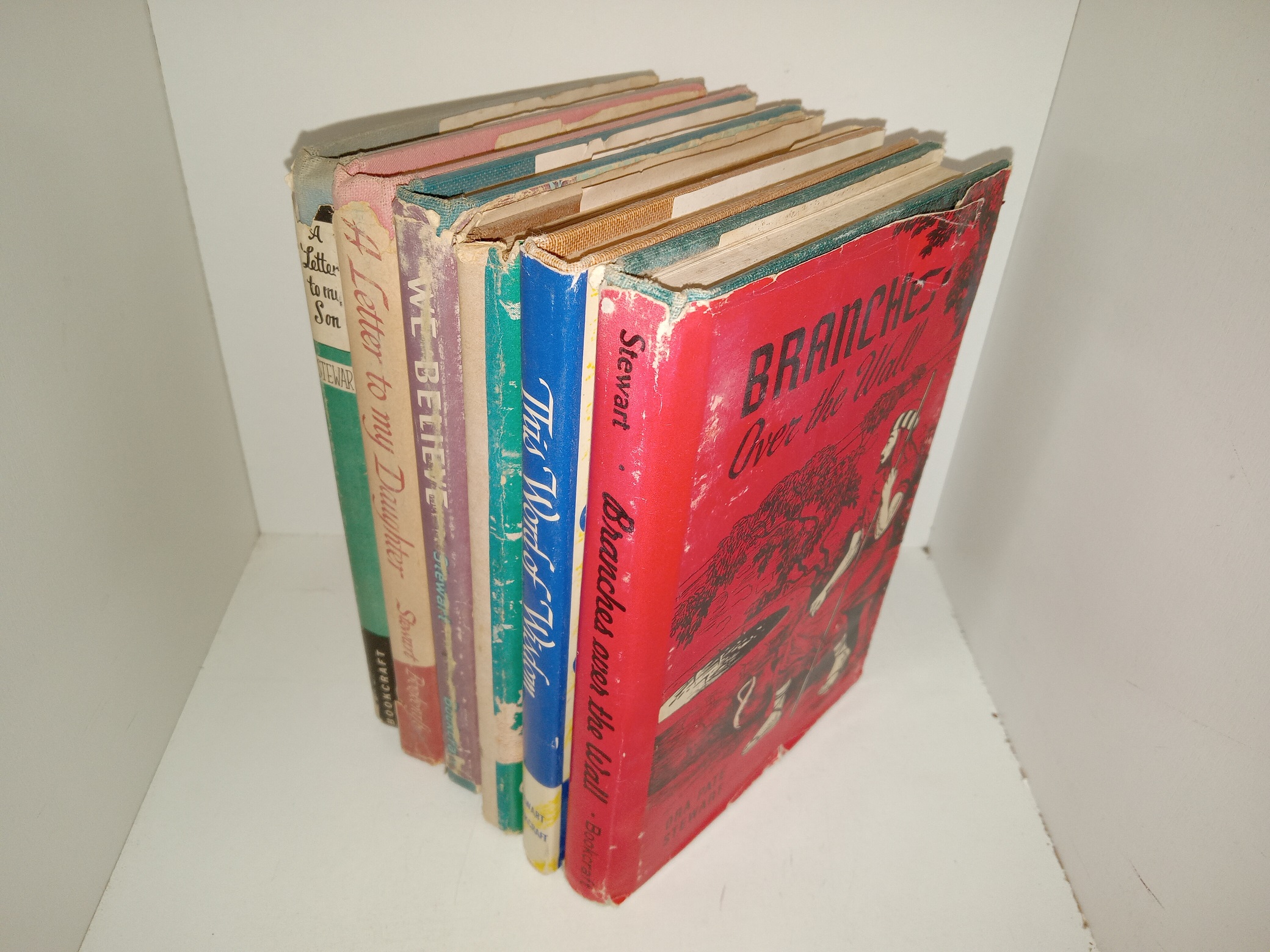 6 fair condition, small hardcovers with dust jackets. The dust jackets have stains, tears, creases, wrinkling, pieces torn off, and marker marks, and some of the inside flaps have had their corners cut off. The covers may have scuffing, some stains, fading, slight warping, and fraying. Some pages have stains, marks or writing in pen or pencil, or eraser marks.