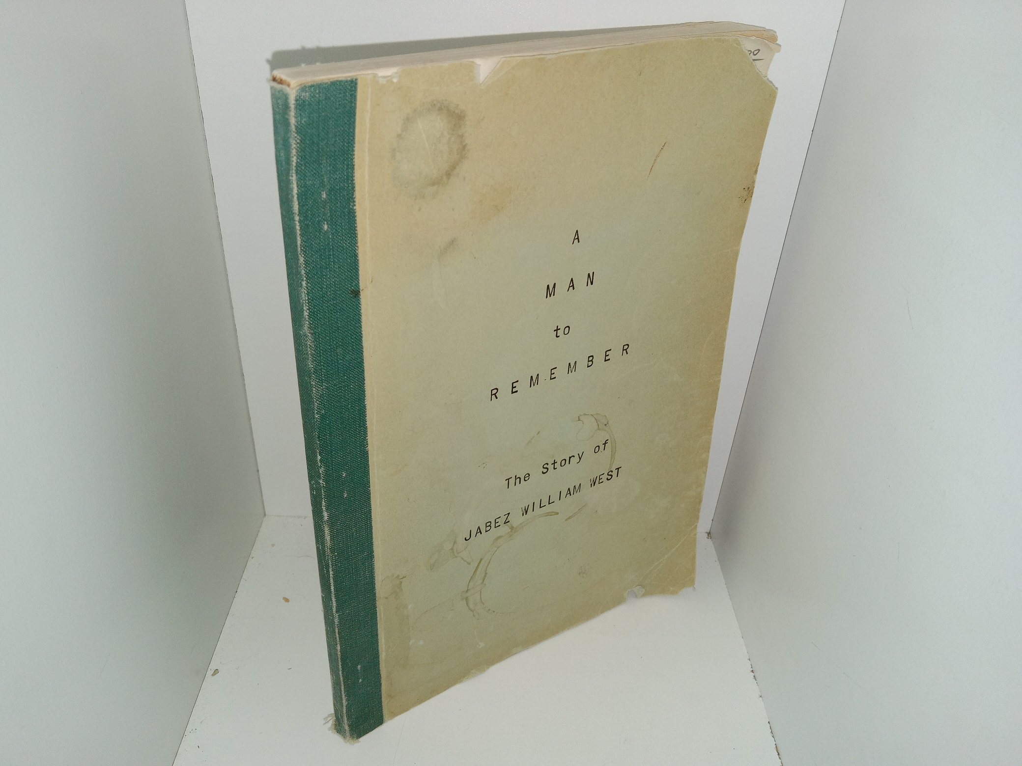 Fair condition, thin, green softcover with a tape binding. The cover has stains, wrinkling, tears, pieces torn off, fraying, scuff marks. and discoloration. Some pages have creases or stains. The front inside cover has a lengthy inscription written in pen. The title page has writing in pencil.