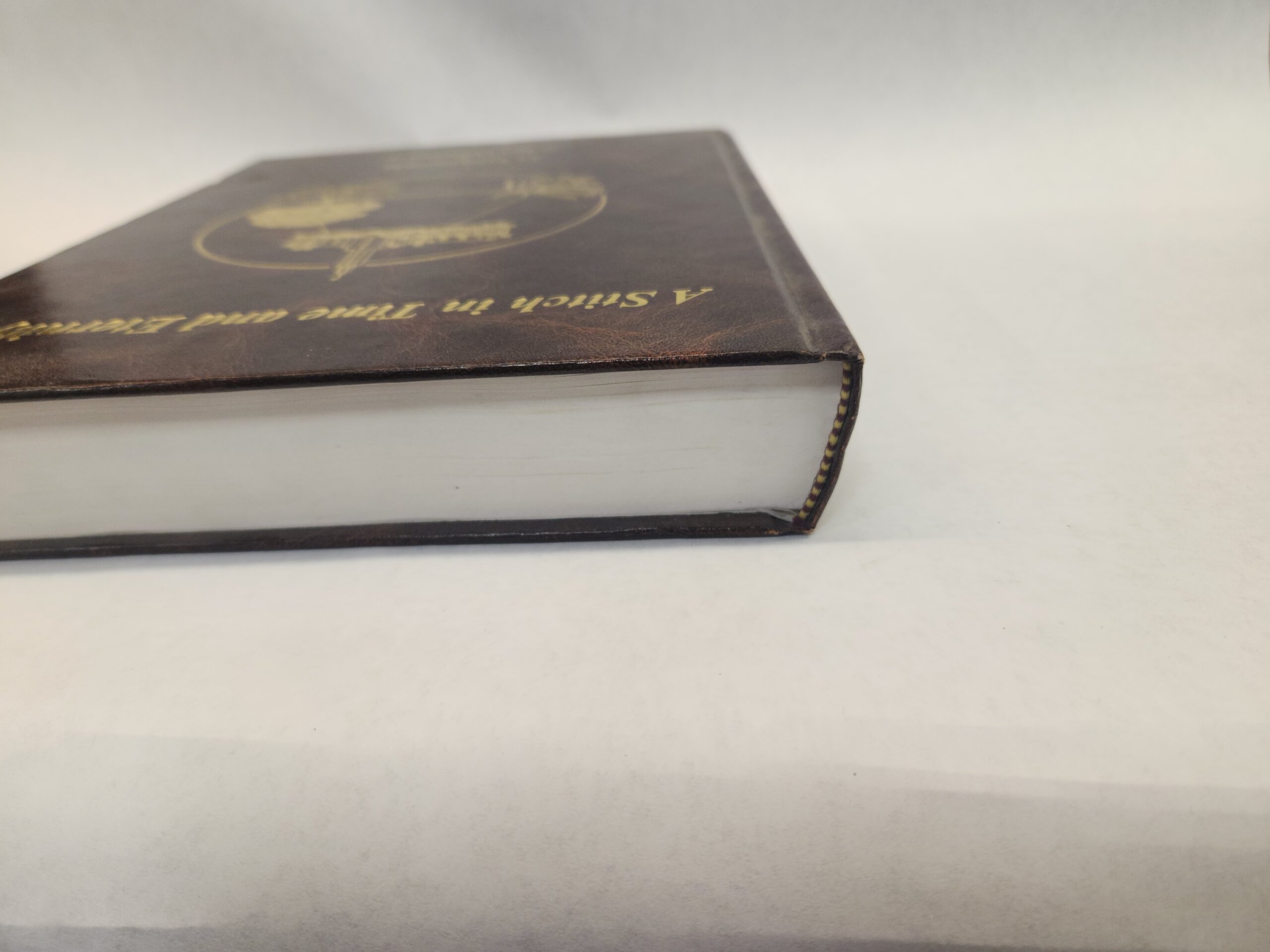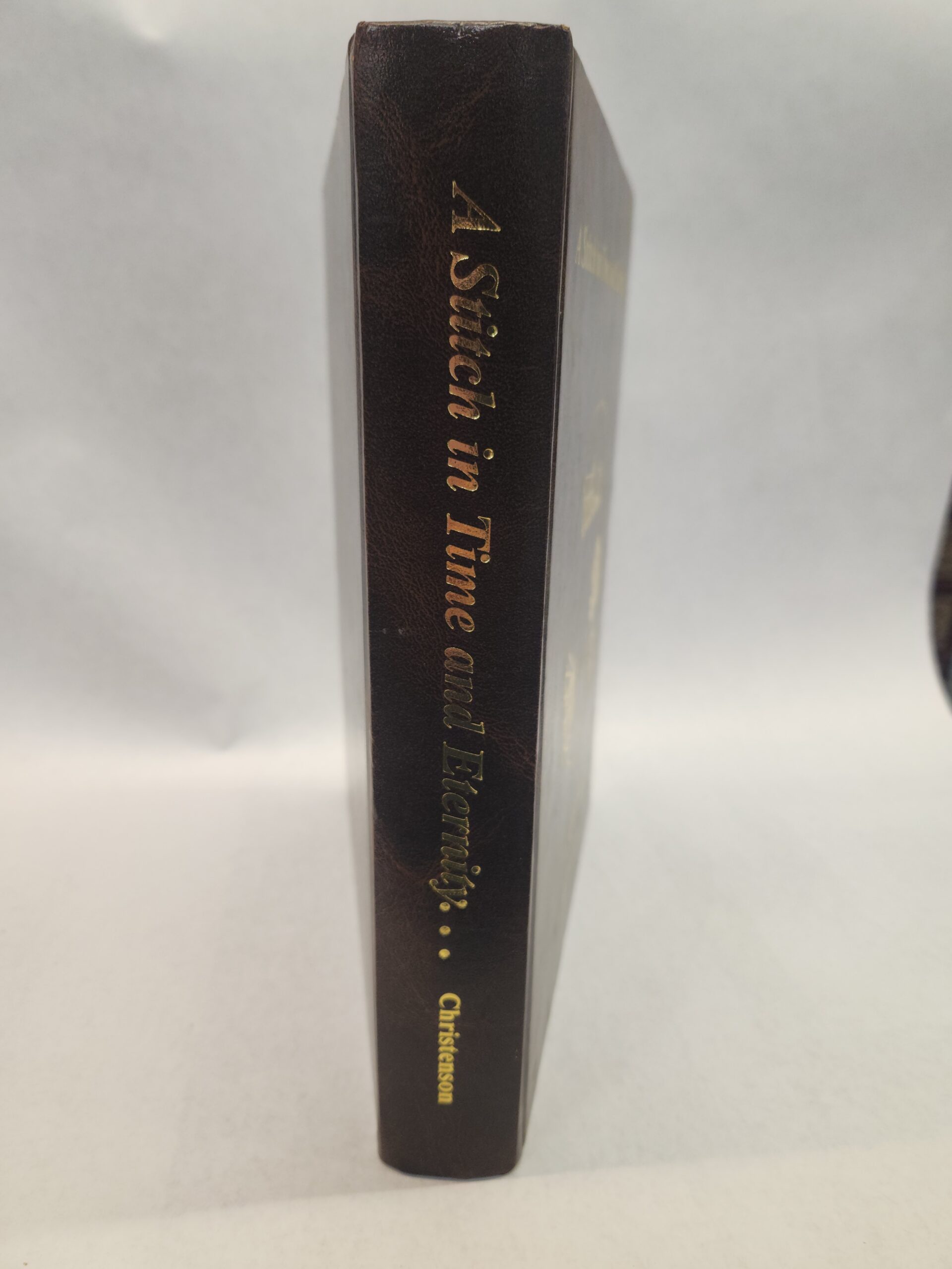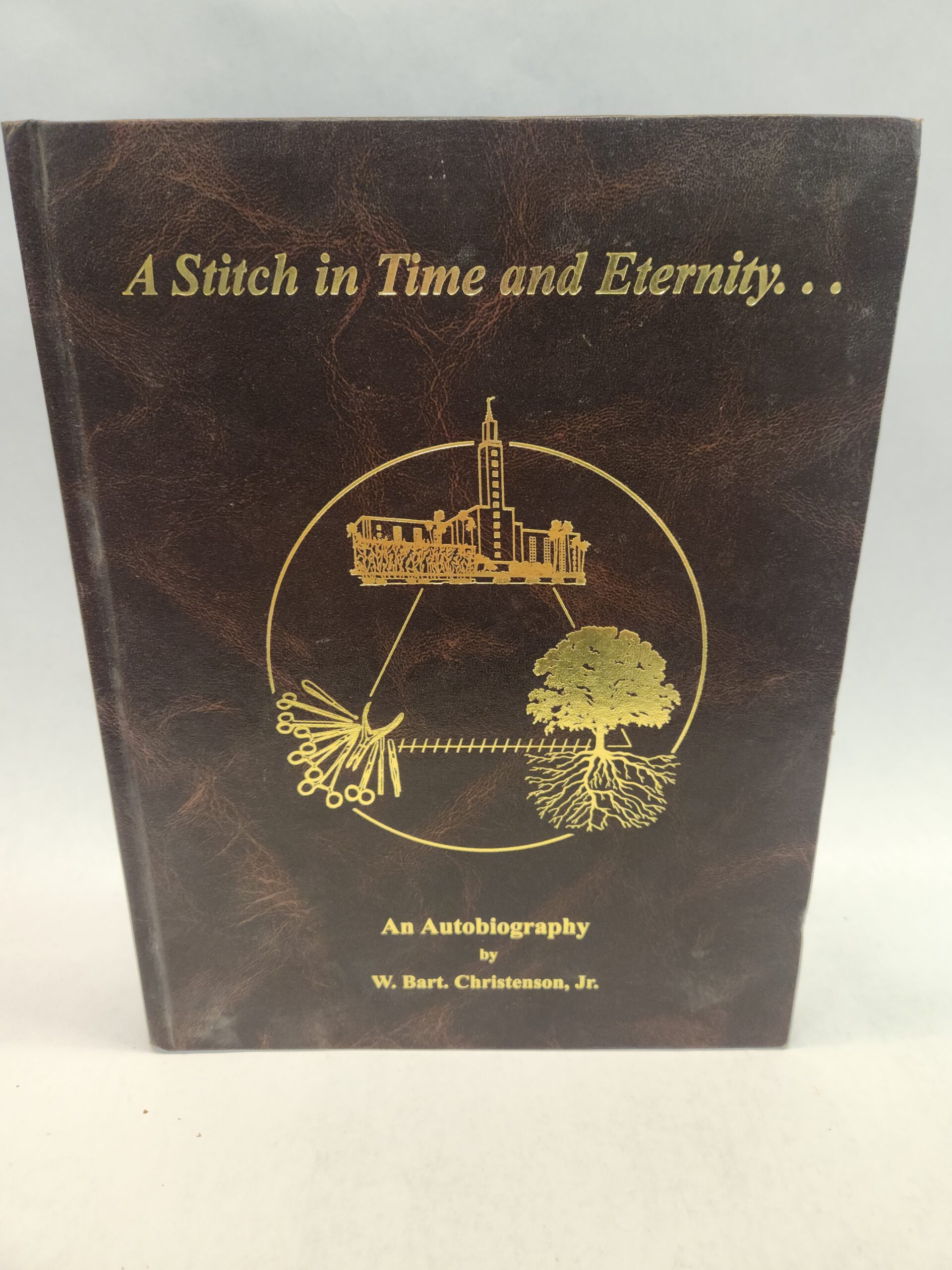 A Stitch in Time and Eternity:: An Autobiography (2005, Hardcover, Brown Faux Leather) No marks/writing on the pages. The binding is good but there is a slight bent that doesn’t let it sit straight (see pic in gallery). Corner and edges show little shelf wear except for a dent in the front cover page edge end. The cover, front and back, shows smudge marks and a couple small dents.